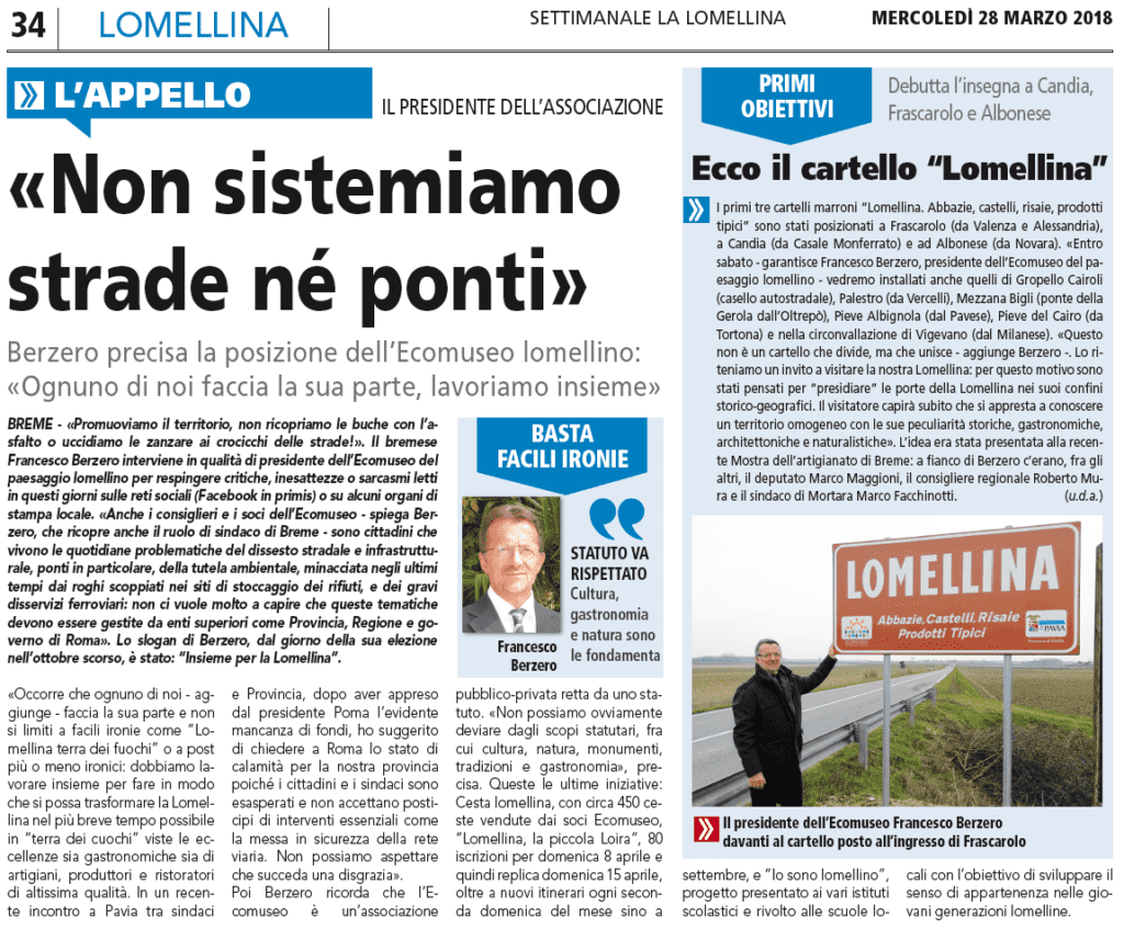 “Un cartello che non divide, ma unisce. Un invito per tutti a venire a visitare la nostra Lomellina”. Sono le parole di Francesco Berzero, presidente dell’Ecomuseo del paesaggio lomellino che domenica, in concomitanza alla quarantunesima edizione della Mostra dell’artigianato, commercio e agricoltura svoltasi nell’abazia di Breme, ha ufficialmente presentato i cartelli promozionali del territorio che […]