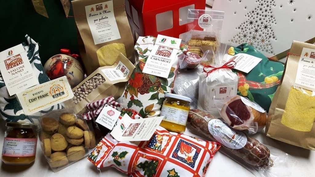 Cesta lomellina, con i prodotti tipici, sarà a disposizione nei sette punti vendita e, in via eccezionale, all’appuntamento “Natale in abbazia” di Breme.