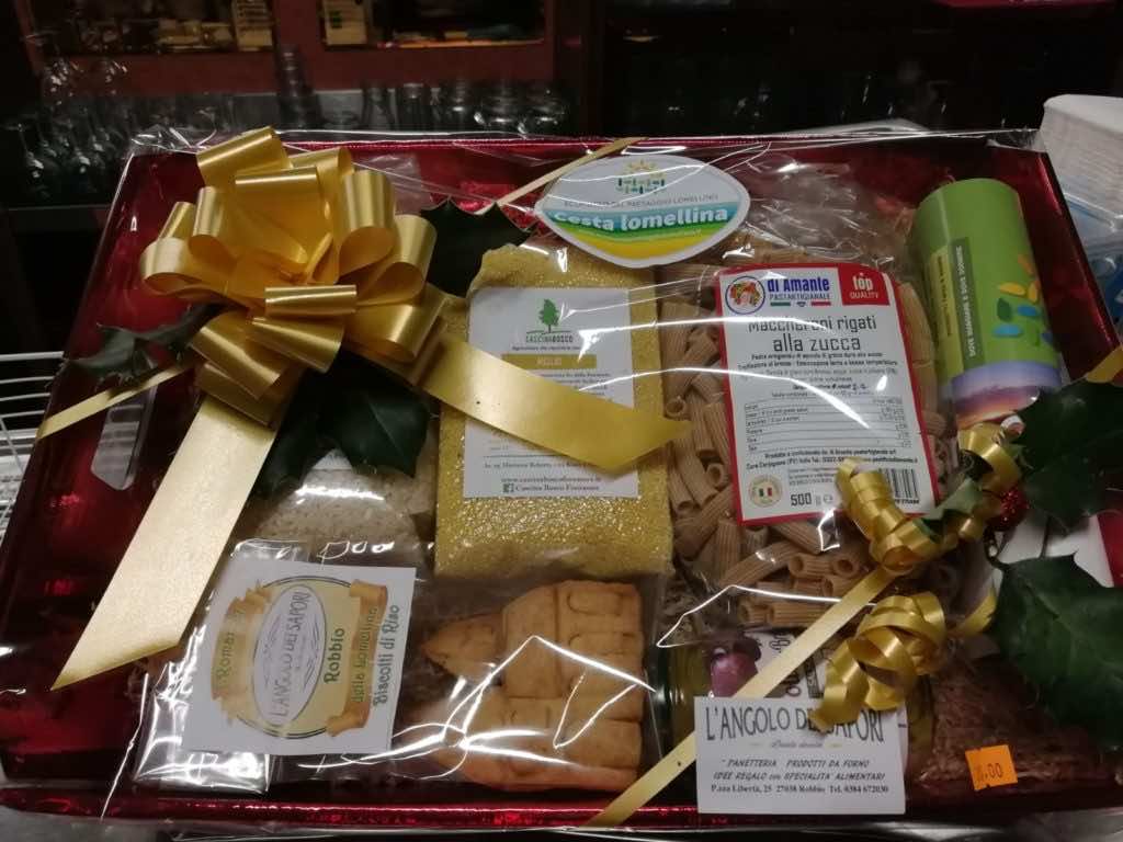 Cesta lomellina, con i prodotti tipici, sarà a disposizione nei sette punti vendita e, in via eccezionale, all’appuntamento “Natale in abbazia” di Breme.