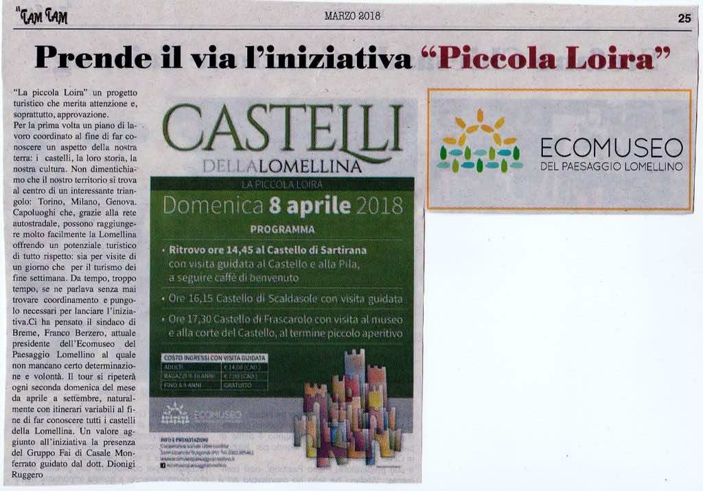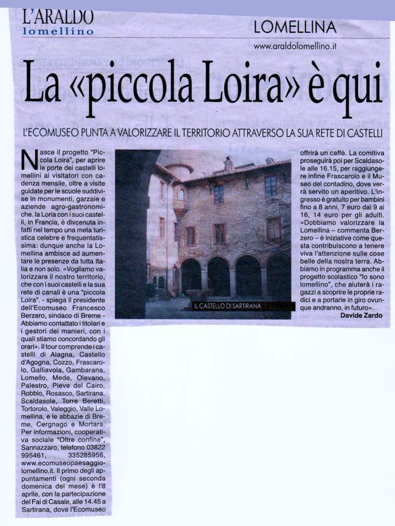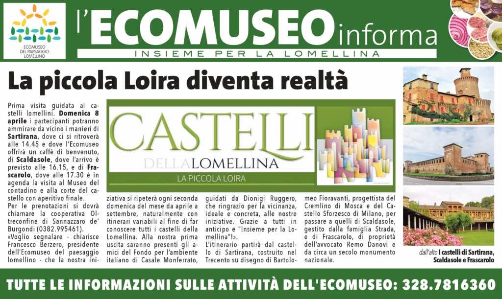 Prosegue con successo la campagna di iscrizioni alla giornata inaugurale del progetto “Lomellina, la piccola Loira” proposto dall’Ecomuseo del Paesaggio Lomellino, presieduto da Francesco Berzero (sindaco di Breme, nda), finalizzato a promuovere il territorio lomellino attraverso visite guidate a castelli e abazie del territorio. Si inizierà infatti, come noto, domenica 8 aprile con visite dalle […]