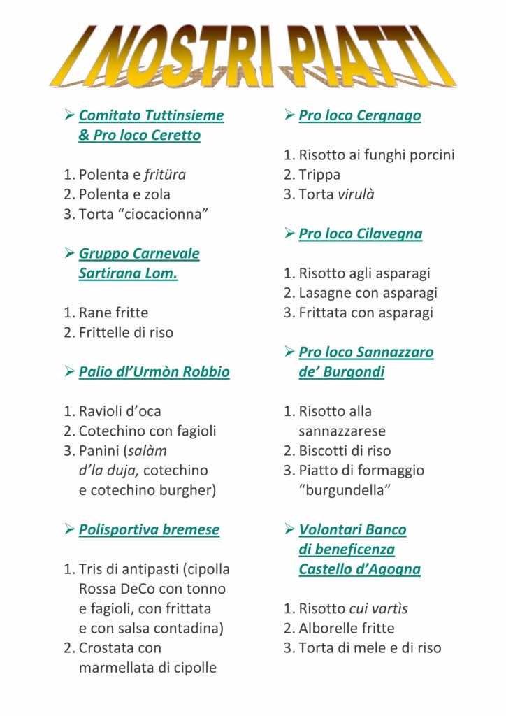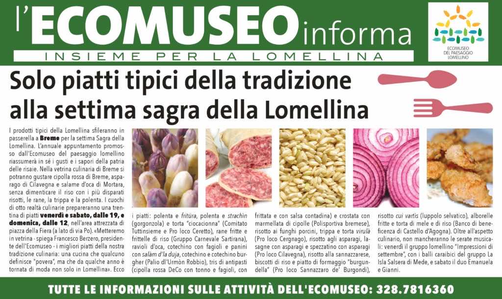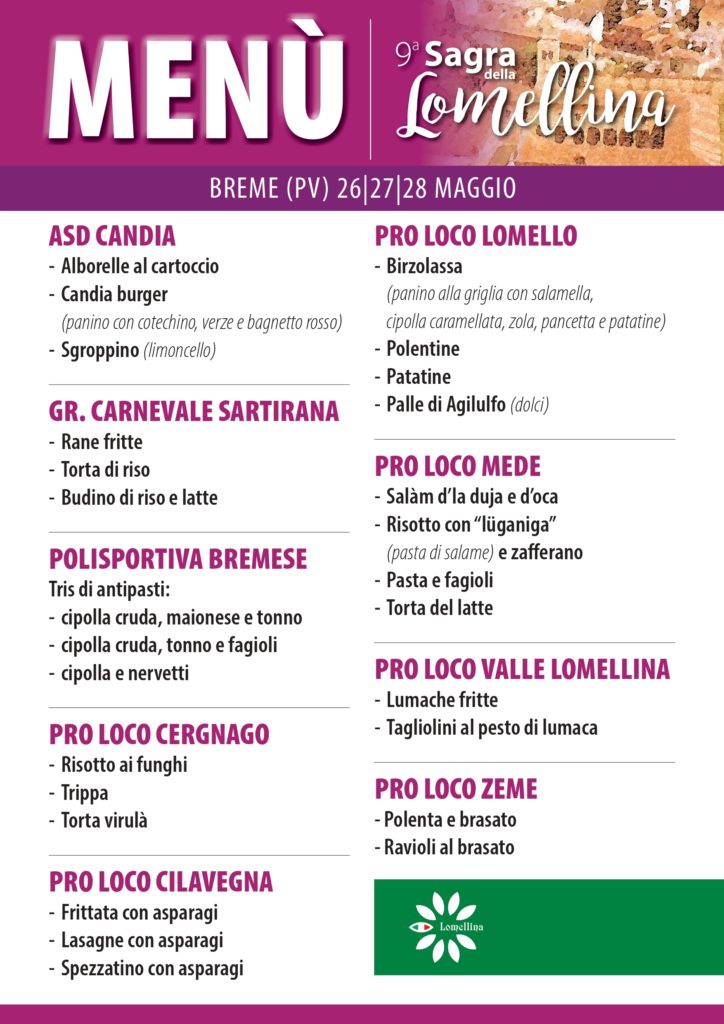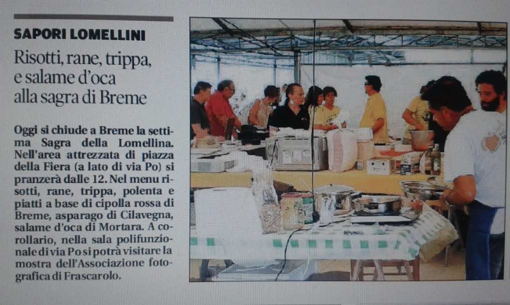 Torna a Breme la Sagra della Lomellina: solo piatti tipici! Info: 328.786360